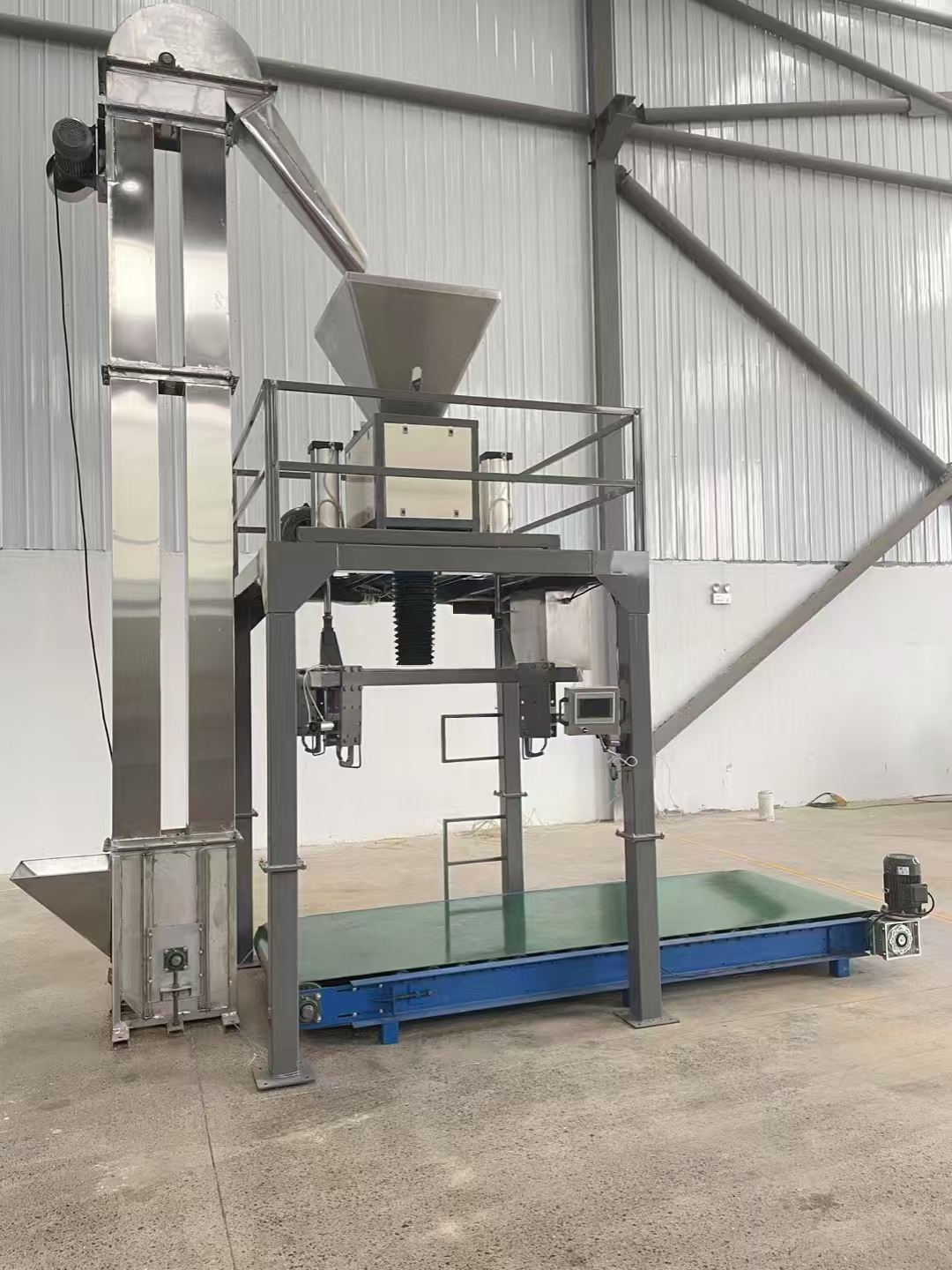 木屑顆粒噸包機采用重力式自流給料結(jié)構(gòu),凈重式稱重斗計量 、高精度稱重傳感器,大小二級(或三級)給料精度控制,保證稱重速度及秤量準(zhǔn)確度。自動完成夾袋、計量、灌裝、松袋、脫帶、輸送等工作過程...